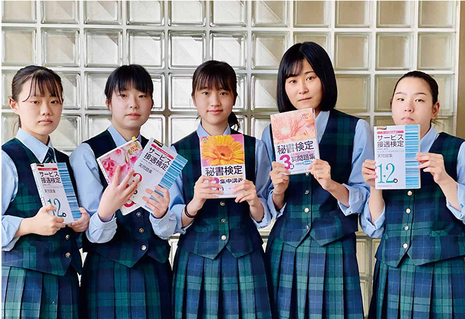 生徒の興味を把握することで、様々な資格取得の機会を提供。英検、漢検をはじめ、専門学科では全商簿記、国家試験資格取得まで幅広くサポート。