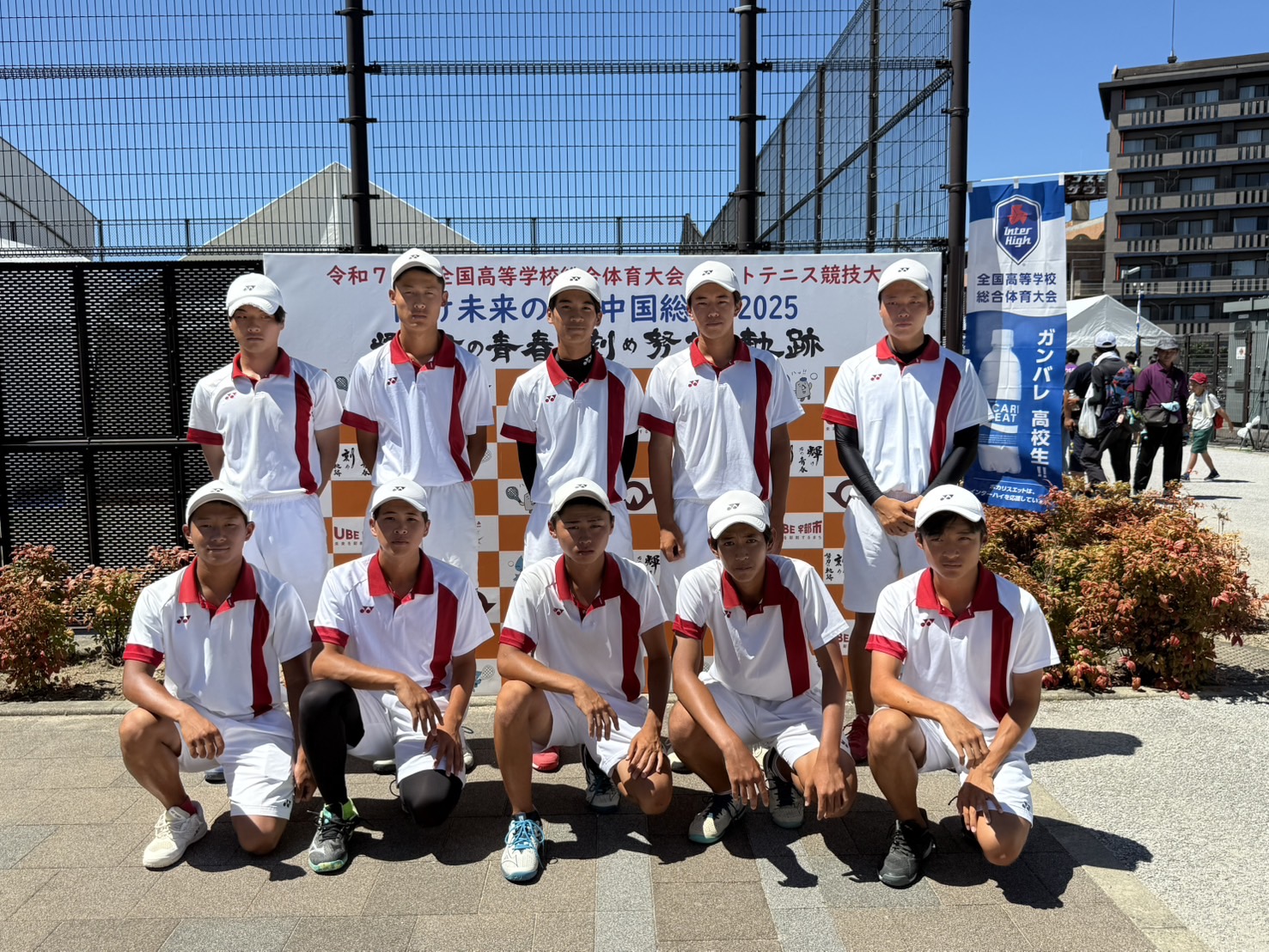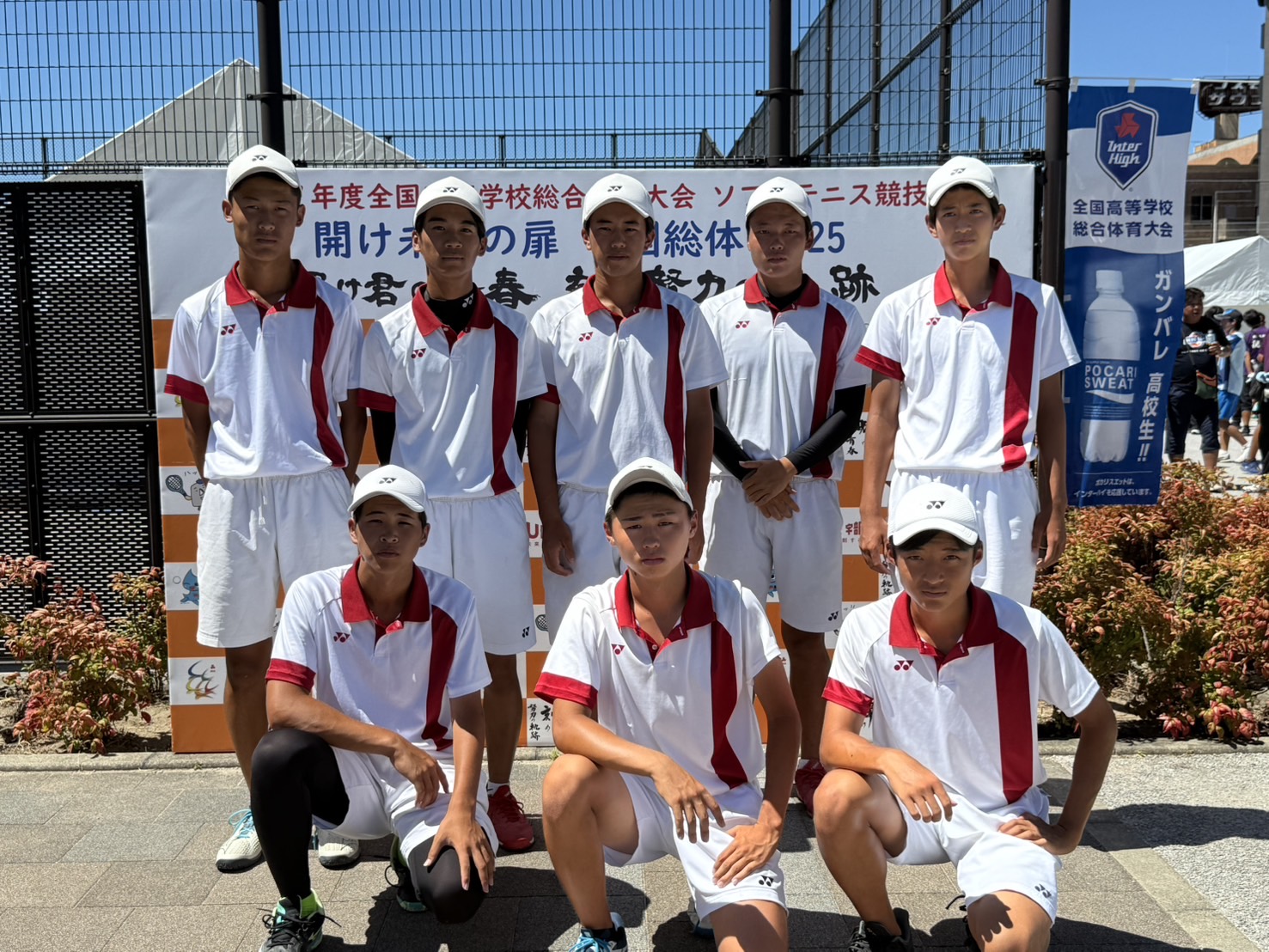 男子ソフトテニス部です。7月25日から山口県宇部市で行われた、全国総体ソフトテニス競技に参加しました。団体戦では2年連続の出場となり、昨年の選手が多数残る中で挑んだインターハイでしたが、結果としては初戦で羽黒高校に敗退。悔しい結果となりました。しかしながら、部員全員で挑んだインターハイで、ベンチワークや応援では、控えの選手や応援生徒も素早く動き、チーム一丸で戦うことができました。多くのことを勉強したインターハイでした。この経験を糧に、これから始まる新人戦での全国選抜出場、インターハイ県予選3連覇を第1の目標に全国制覇を目指して、頑張っていきます。応援よろしくお願いします!!