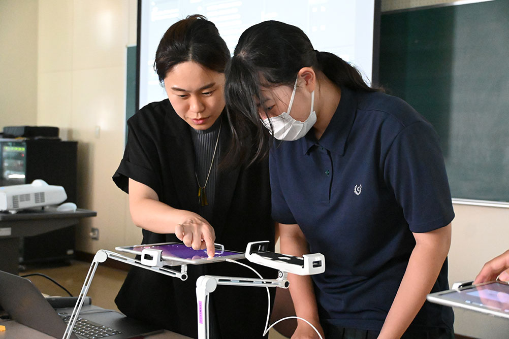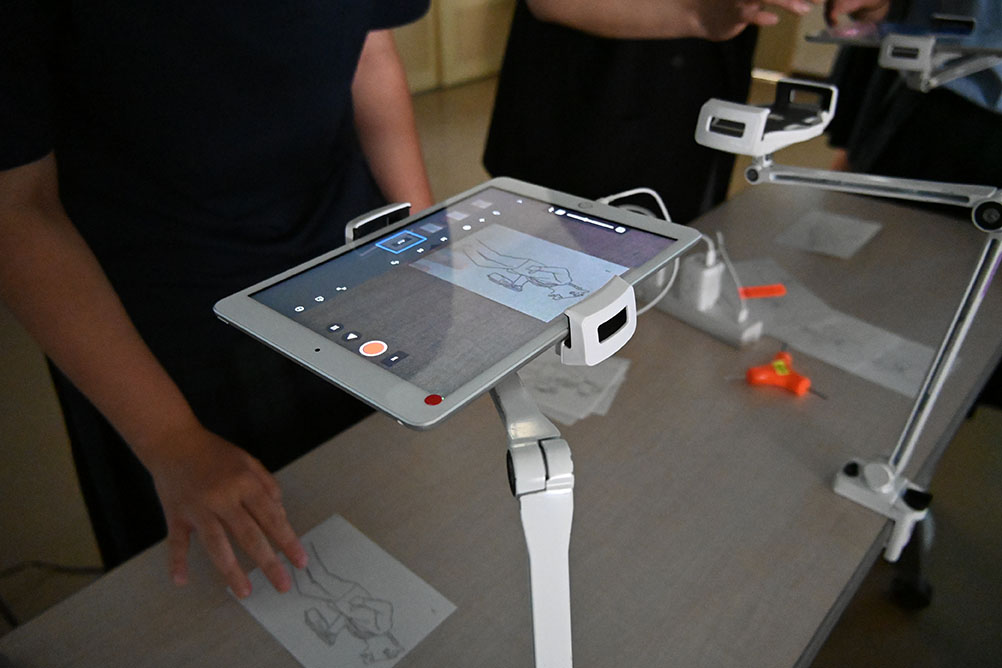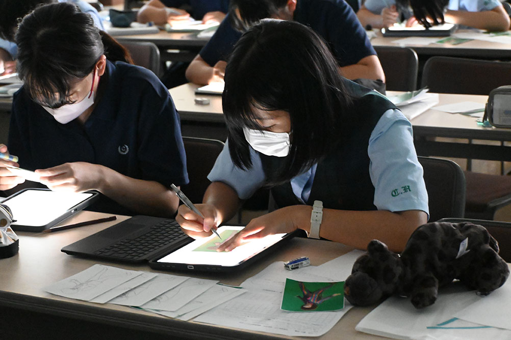 午後は卒業生も活躍中の女子美術大学の出張授業。今回のテーマはロトスコープ技法を用いたアニメーションです。この技法では撮影した動画をトレースしてアニメーション作品を制作します。今後の制作活動にむけて大いにインスピレーションを受けた体験になりました。