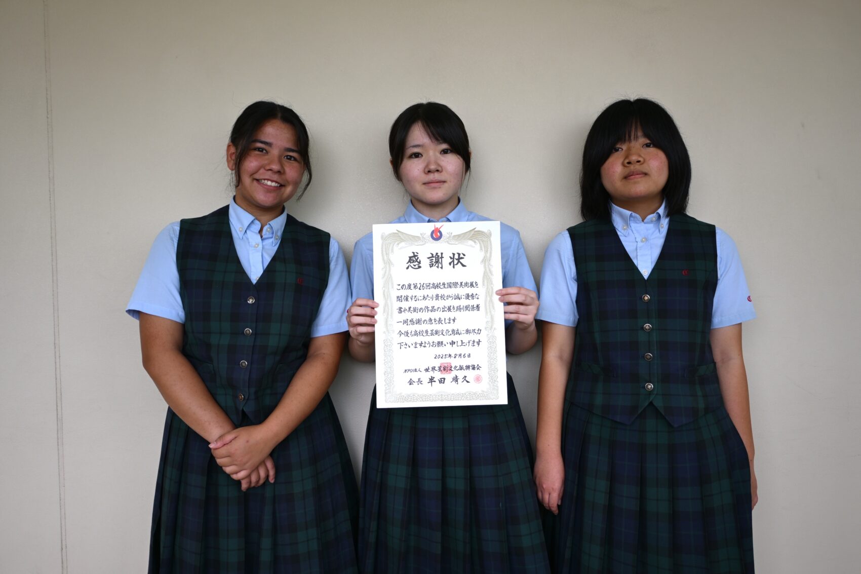 ・第26回高校生国際美術展 感謝状